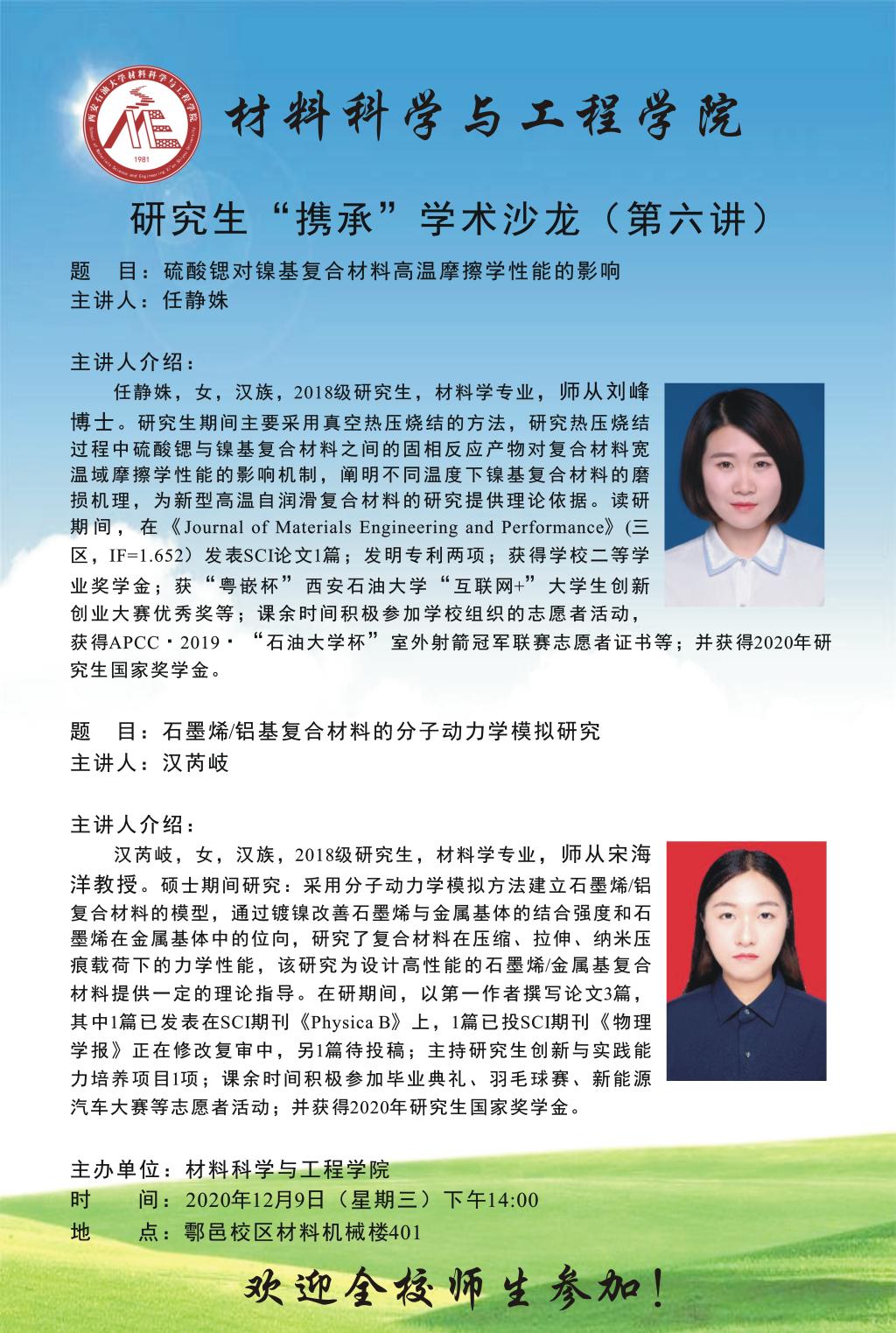 材料科學(xué)與工程學(xué)院研究生“攜承”學(xué)術(shù)論壇(第六期)