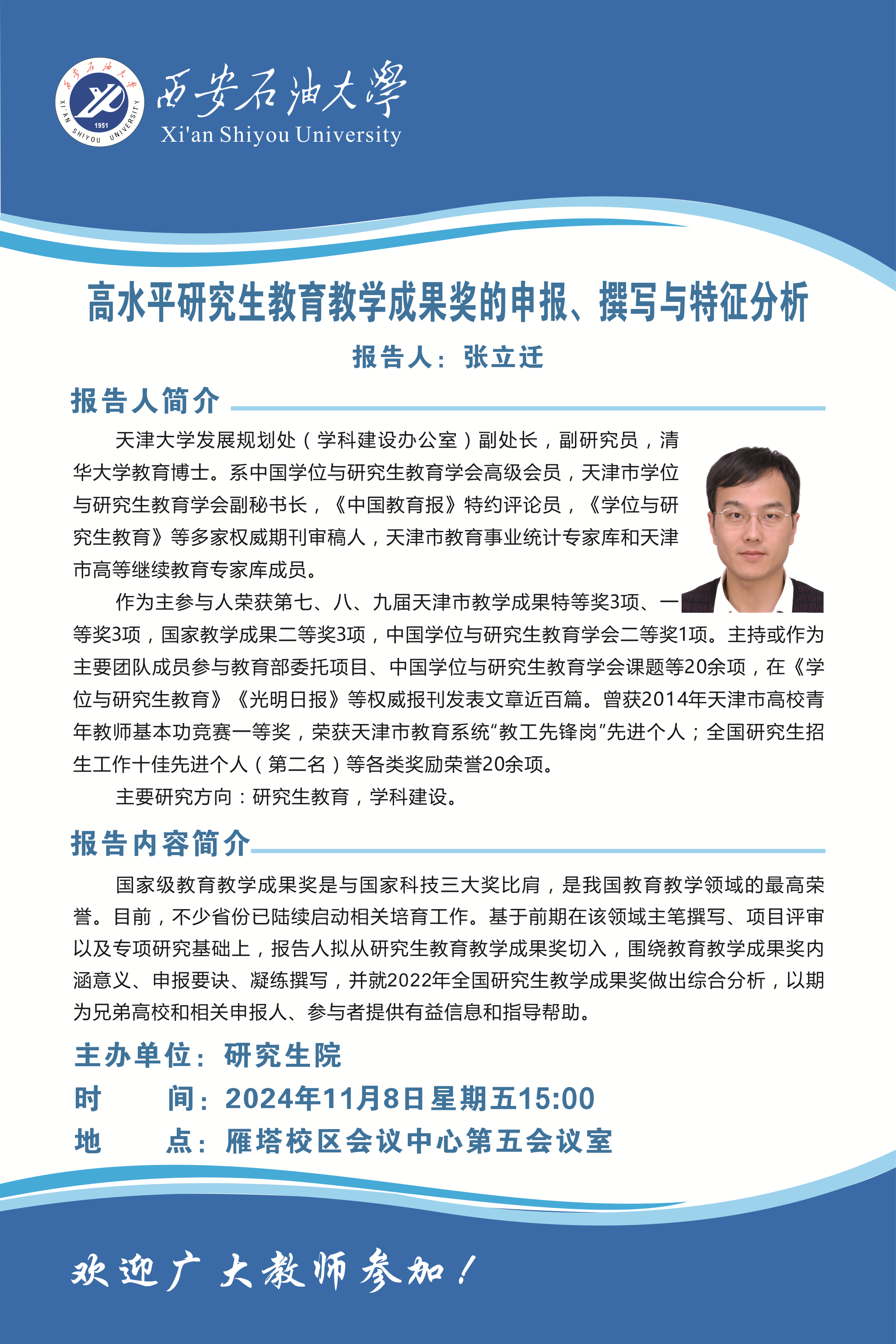 報告地點:雁塔校區(qū)西階會議中心第五會議室