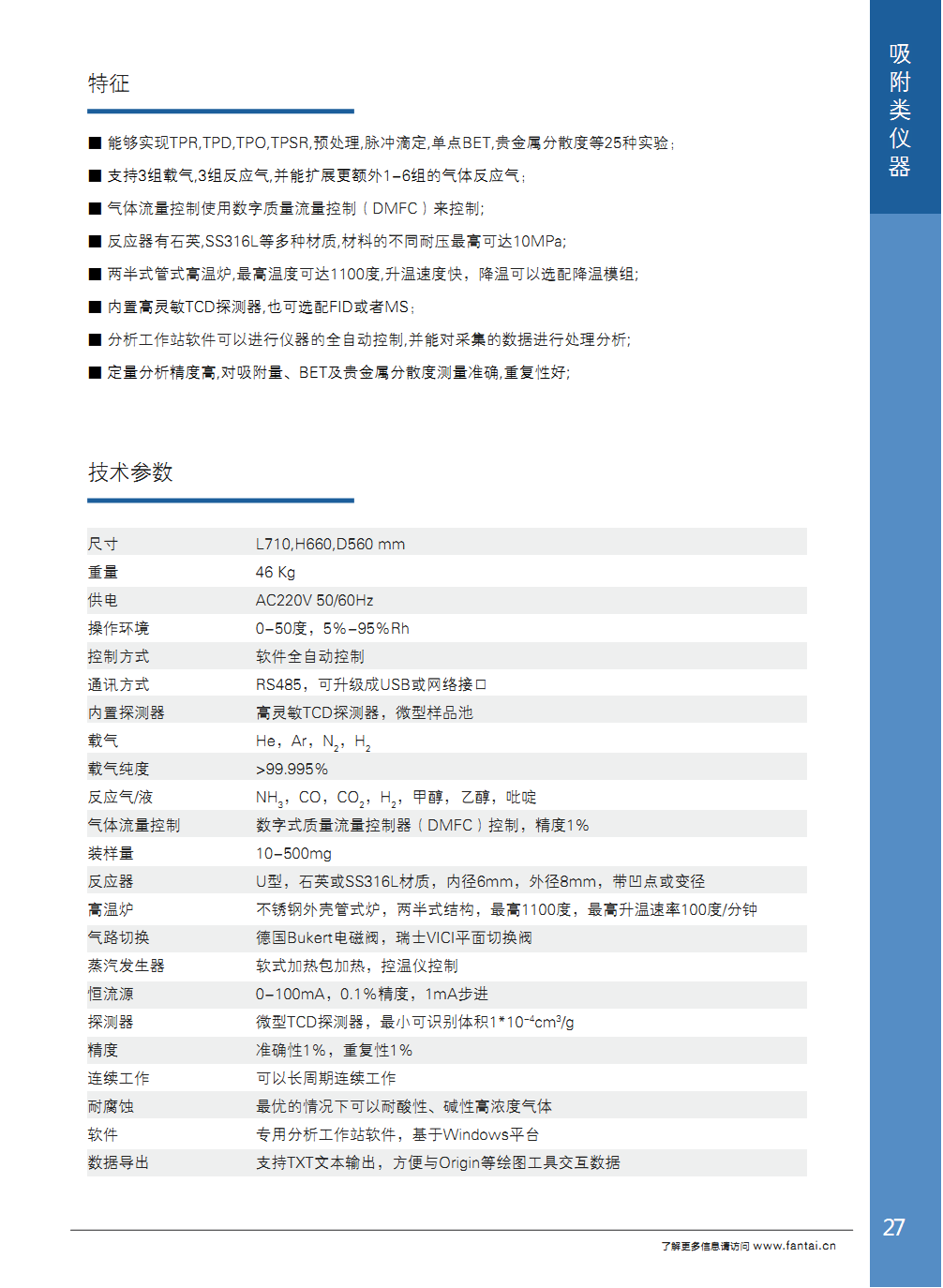 全自動程序升溫化學吸附儀,TPR,TPD,TPO,TPSR等多種功能,可以實現(xiàn)最高1200度的多段程序升溫,內(nèi)置TCD或FID檢測器,全自動軟件控制,留有GC或MS接口。
